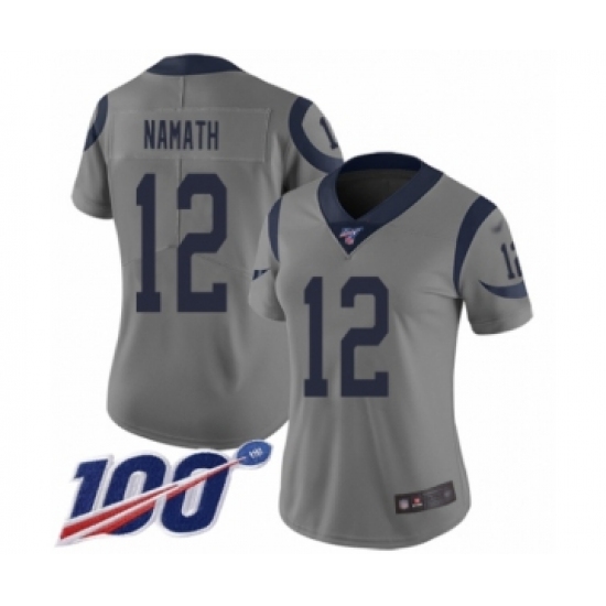 Women's Los Angeles Rams #12 Joe Namath Limited Gray Inverted Legend 100th Season Football Jersey