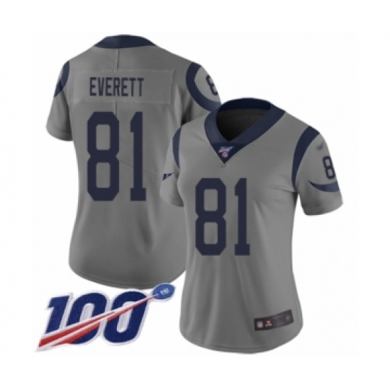 Women's Los Angeles Rams #81 Gerald Everett Limited Gray Inverted Legend 100th Season Football Jersey