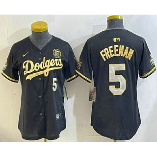 Women's Los Men's Los Angeles Dodgers #5 Freddie Freeman Black Gold 2024 World Series 34 Stitched Cool Base Jerseys