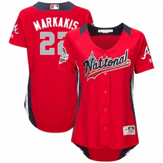 >Women's Majestic Atlanta Braves #22 Nick Markakis Game Red National League 2018 MLB All-Star MLB Jersey
