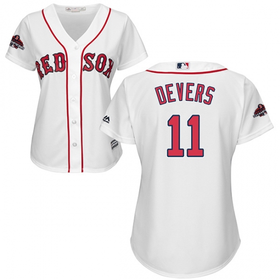 >Women's Majestic Boston Red Sox #11 Rafael Devers Authentic White Home 2018 World Series Champions MLB Jersey