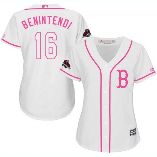 >Women's Majestic Boston Red Sox #16 Andrew Benintendi Authentic White Fashion 2018 World Series Champions MLB Jersey