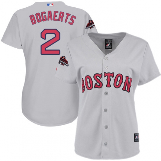 Women's Majestic Boston Red Sox #2 Xander Bogaerts Authentic Grey Road 2018 World Series Champions MLB Jersey