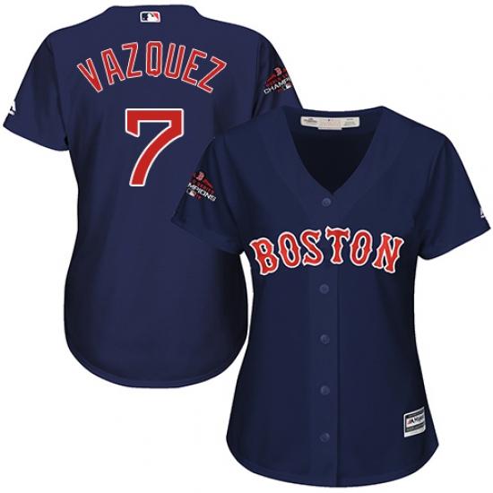 Women's Majestic Boston Red Sox #7 Christian Vazquez Authentic Navy Blue Alternate Road 2018 World Series Champions MLB Jersey