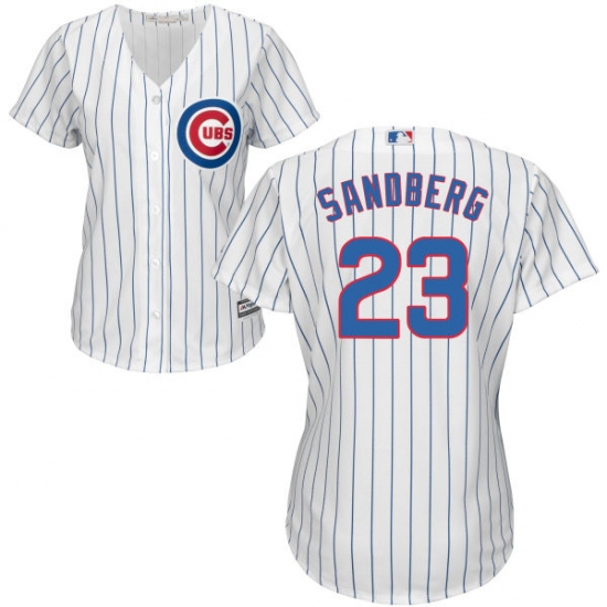 Home>MLB>Chicago Cubs>Ryne Sandberg>Women's Majestic Chicago Cubs #23 Ryne Sandberg Authentic White/Blue Strip Fashion MLB Jersey