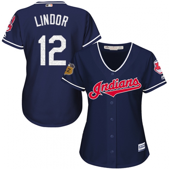 Home>MLB>Cleveland Indians>Francisco Lindor>Women's Majestic Cleveland Indians #12 Francisco Lindor Authentic Navy Blue 2017 Spring Training Cool Base MLB Jersey