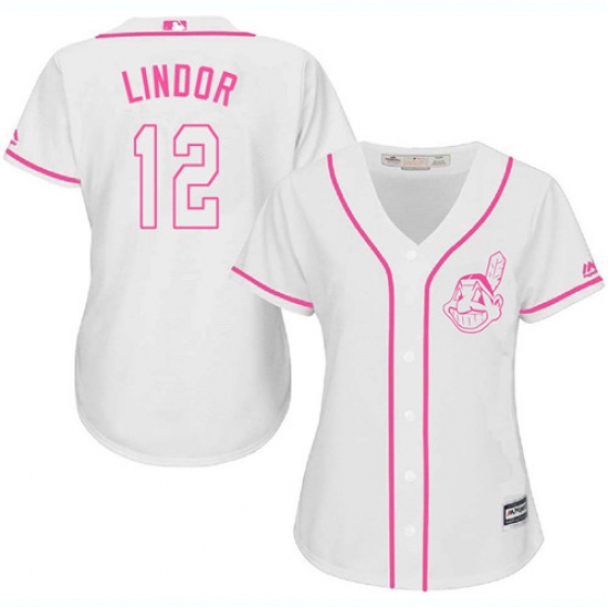 Home>MLB>Cleveland Indians>Francisco Lindor>Women's Majestic Cleveland Indians #12 Francisco Lindor Replica White Fashion Cool Base MLB Jersey