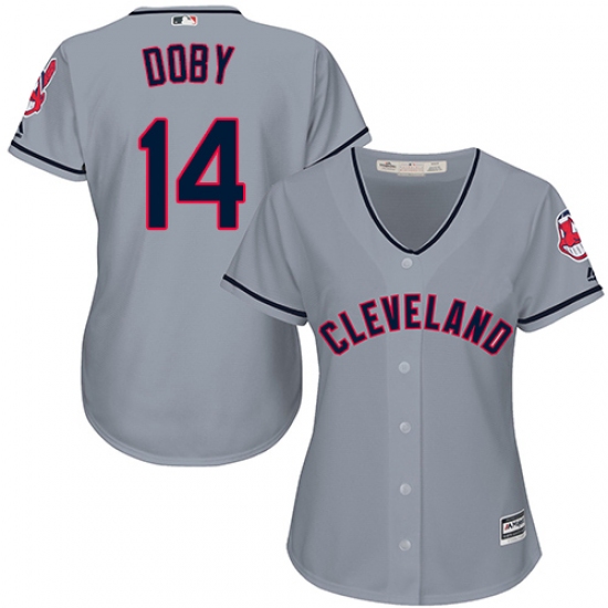Women's Majestic Cleveland Indians #14 Larry Doby Authentic Grey Road Cool Base MLB Jersey