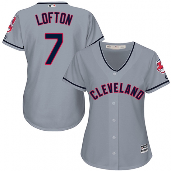 Home>MLB>Cleveland Indians>Kenny Lofton>Women's Majestic Cleveland Indians #7 Kenny Lofton Replica Grey Road Cool Base MLB Jersey