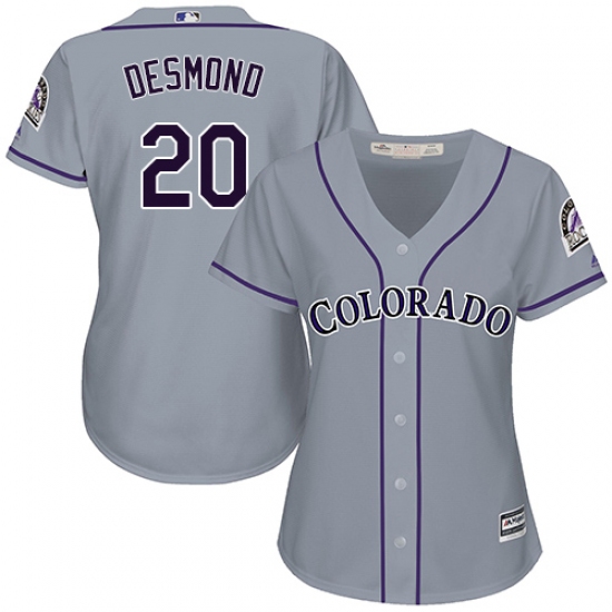 Women's Majestic Colorado Rockies #20 Ian Desmond Replica Grey Road Cool Base MLB Jersey
