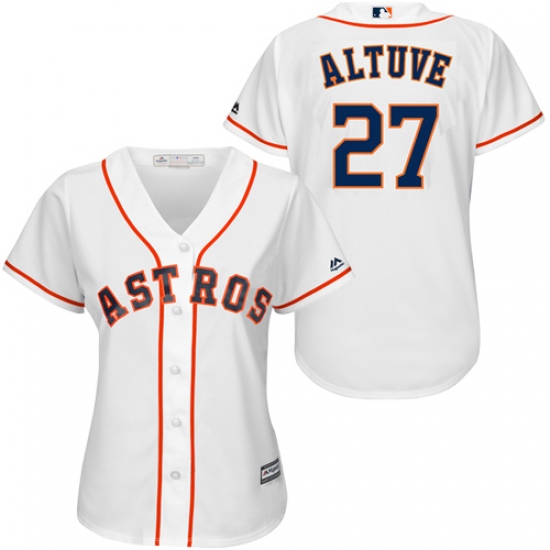 Home>MLB>Houston Astros>Jose Altuve>Women's Majestic Houston Astros #27 Jose Altuve Authentic White Home Cool Base MLB Jersey