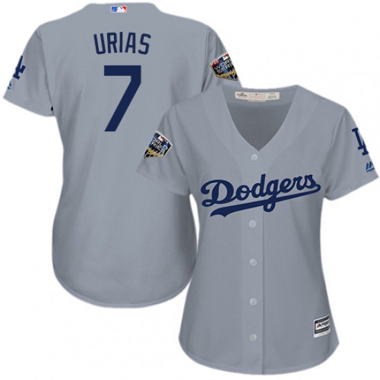 Women's Majestic Los Angeles Dodgers #7 Julio Urias Authentic Grey Road Cool Base 2018 World Series MLB Jersey