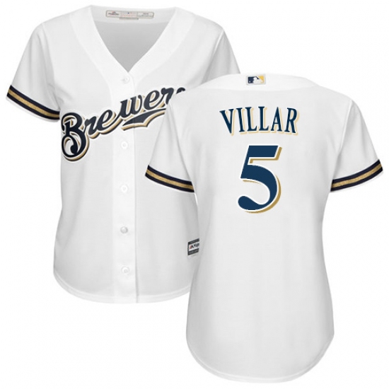 Home>MLB>Milwaukee Brewers>Jonathan Villar>Women's Majestic Milwaukee Brewers #5 Jonathan Villar Authentic White Home Cool Base MLB Jersey