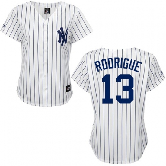 Home>MLB>New York Yankees>Alex Rodriguez>Women's Majestic New York Yankees #13 Alex Rodriguez Replica White/Black Strip MLB Jersey