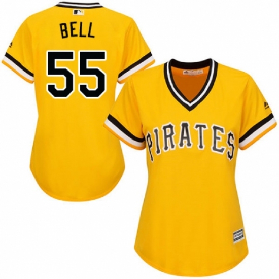>Women's Majestic Pittsburgh Pirates #55 Josh Bell Replica Gold Alternate Cool Base MLB Jersey