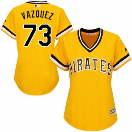 >Women's Majestic Pittsburgh Pirates #73 Felipe Vazquez Replica Gold Alternate Cool Base MLB Jersey