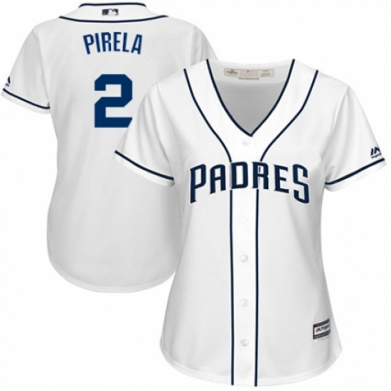 Women's Majestic San Diego Padres #2 Jose Pirela Authentic White Home Cool Base MLB Jersey
