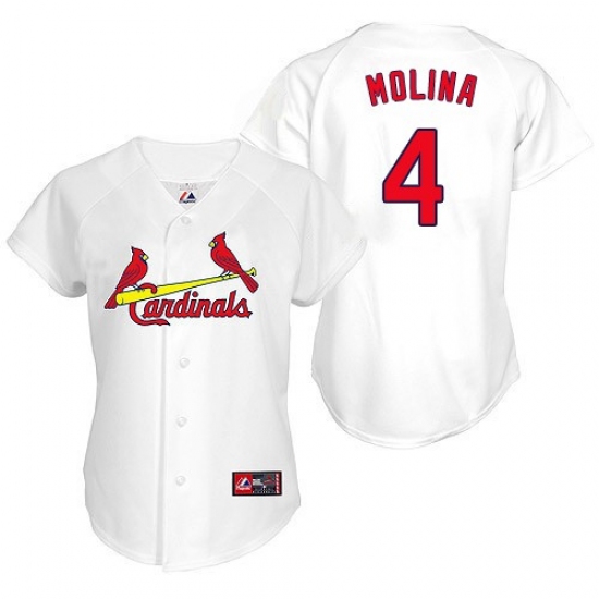 Women's Majestic St. Louis Cardinals #4 Yadier Molina Authentic White MLB Jersey
