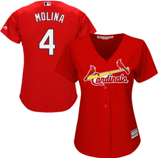 Women's Majestic St. Louis Cardinals #4 Yadier Molina Replica Red Alternate Cool Base MLB Jersey