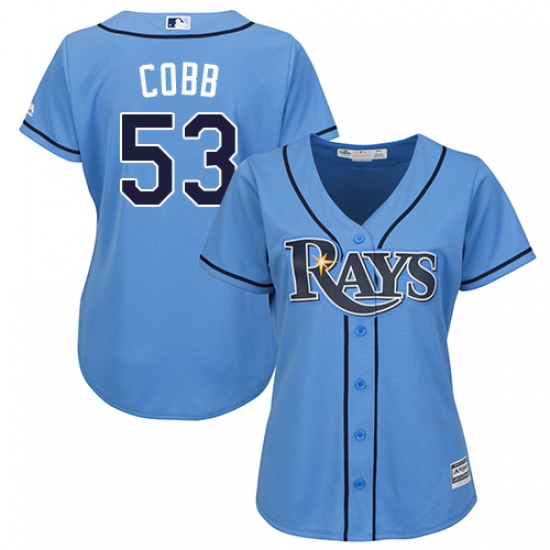 Home>MLB>Tampa Bay Rays>Alex Cobb>Women's Majestic Tampa Bay Rays #53 Alex Cobb Replica Light Blue Alternate 2 Cool Base MLB Jersey
