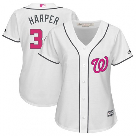 Home>MLB>Washington Nationals>Bryce Harper>Women's Majestic Washington Nationals #34 Bryce Harper Authentic White Mother's Day Cool Base MLB Jersey