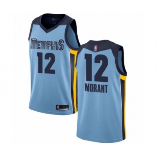 >Women's Memphis Grizzlies #12 Ja Morant Authentic Light Blue Basketball Jersey Statement Edition