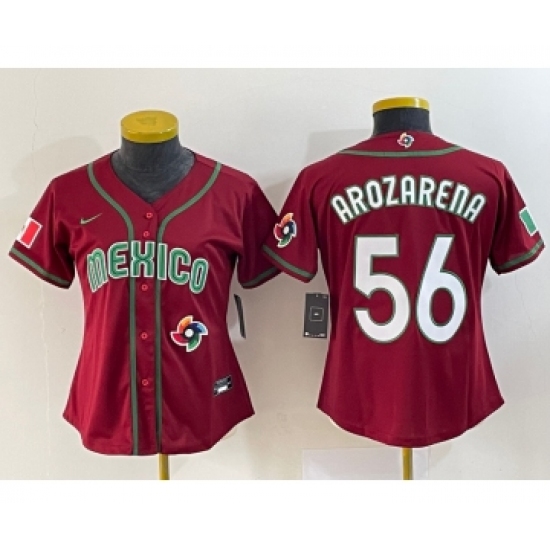 >Women's Mexico Baseball #56 Randy Arozarena 2023 Red World Classic Stitched Jersey