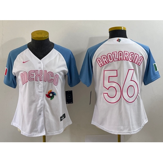 Women's Mexico Baseball #56 Randy Arozarena 2023 White Blue World Classic Stitched Jersey1