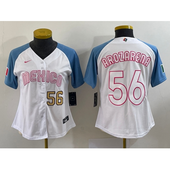 Women's Mexico Baseball #56 Randy Arozarena 2023 White Blue World Classic Stitched Jersey2