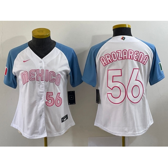 Women's Mexico Baseball #56 Randy Arozarena 2023 White Blue World Classic Stitched Jersey6
