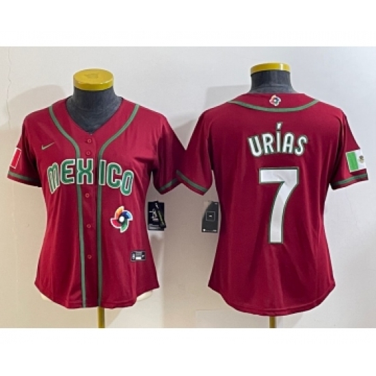 Women's Mexico Baseball #7 Julio Urias Number 2023 Red World Baseball Classic Stitched Jersey13