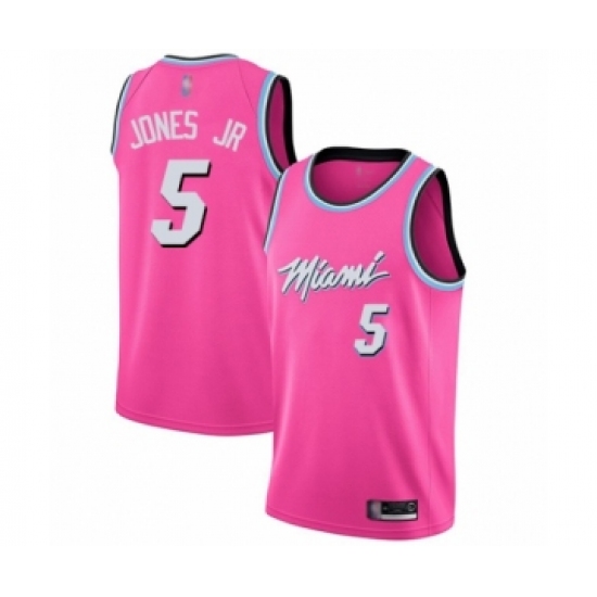 >Women's Miami Heat #5 Derrick Jones Jr Pink Swingman Jersey - Earned Edition