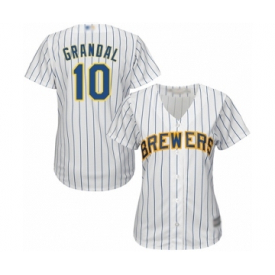 Women's Milwaukee Brewers #10 Yasmani Grandal Authentic White Home Cool Base Baseball Jersey