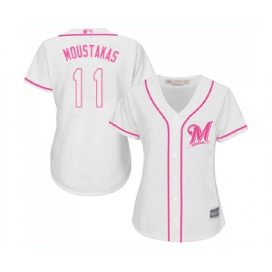 Women's Milwaukee Brewers #11 Mike Moustakas Replica White Fashion Cool Base Baseball Jersey