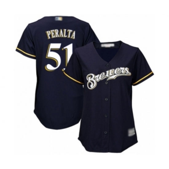Women's Milwaukee Brewers #51 Freddy Peralta Authentic Navy Blue Alternate Cool Base Baseball Player Jersey