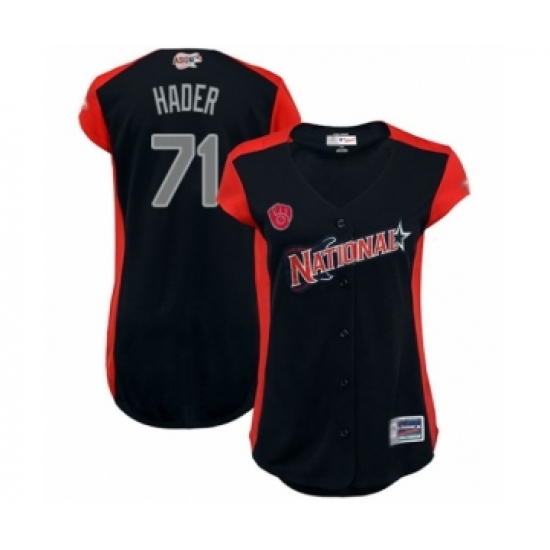 >Women's Milwaukee Brewers #71 Josh Hader Authentic Navy Blue National League 2019 Baseball All-Star Jersey