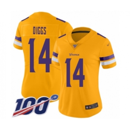 >Women's Minnesota Vikings #14 Stefon Diggs Limited Gold Inverted Legend 100th Season Football Jersey