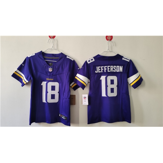 Youth Minnesota Vikings #18 Justin Jefferson Purple Team Color Stitched NFL Vapor Untouchable Limited Jersey