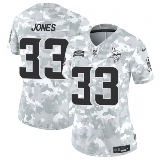 >Women's Minnesota Vikings #33 Aaron Jones 2024 F.U.S.E Arctic Camo Salute To Service Limited Stitched Jersey(Run Small)