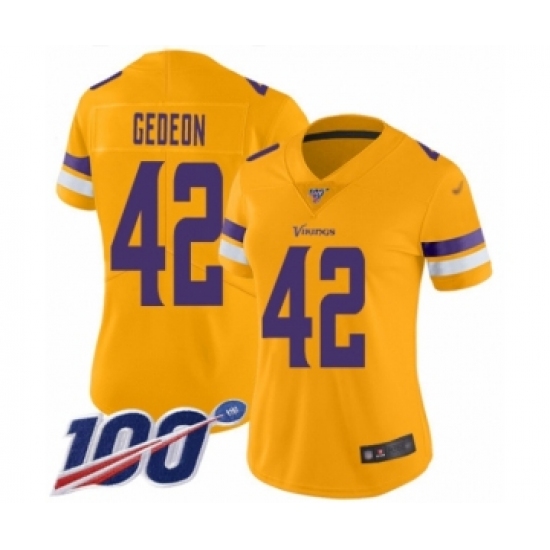 >Women's Minnesota Vikings #42 Ben Gedeon Limited Gold Inverted Legend 100th Season Football Jersey