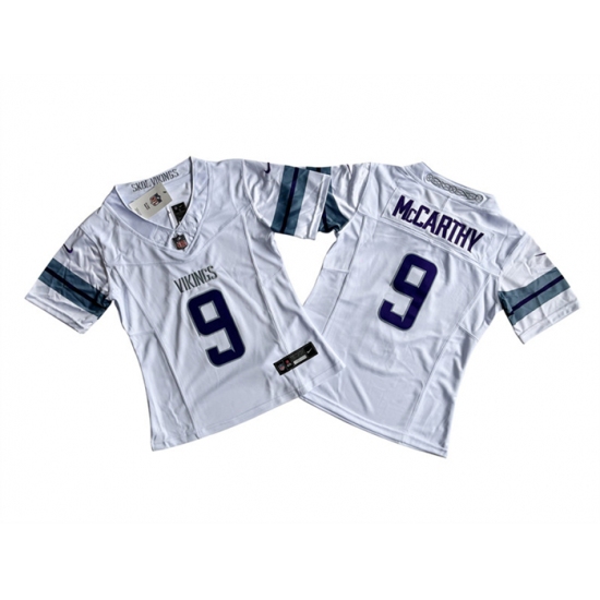 >Women's Minnesota Vikings #9 J.J. McCarthy White 2024 F.U.S.E. Winter Warrior Limited Jersey