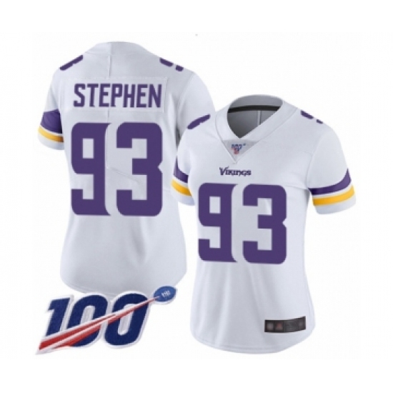 Women's Minnesota Vikings #93 Shamar Stephen White Vapor Untouchable Limited Player 100th Season Football Jersey