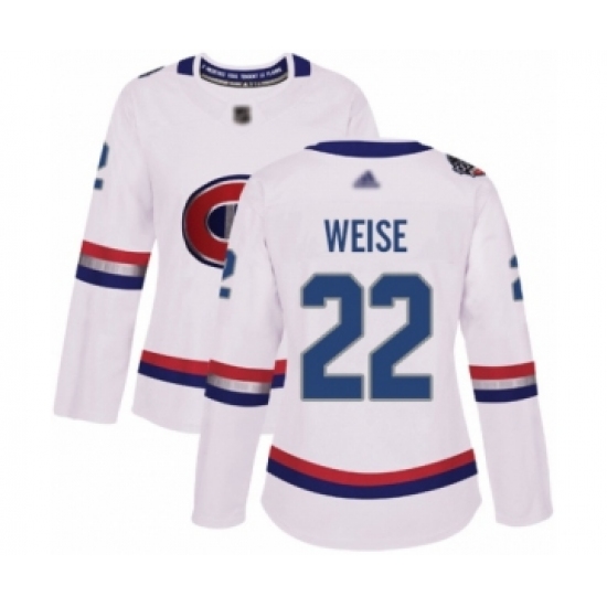 >Women's Montreal Canadiens #22 Dale Weise Authentic White 2017 100 Classic Hockey Jersey