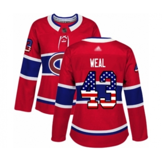 Women's Montreal Canadiens #43 Jordan Weal Authentic Red USA Flag Fashion Hockey Jersey