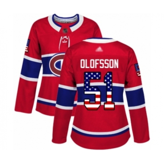 Women's Montreal Canadiens #51 Gustav Olofsson Authentic Red USA Flag Fashion Hockey Jersey