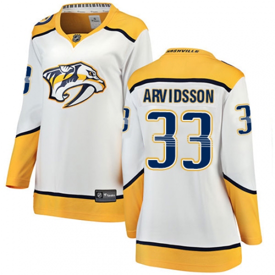 Home>NHL>Nashville Predators>Viktor Arvidsson>Women's Nashville Predators #33 Viktor Arvidsson Fanatics Branded White Away Breakaway NHL Jersey