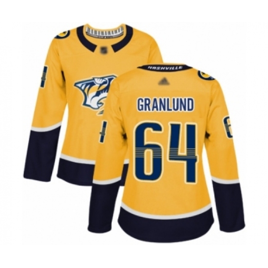 >Women's Nashville Predators #64 Mikael Granlund Authentic Gold Home Hockey Jersey