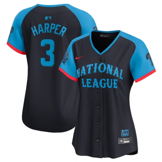>Women's National League #3 Bryce Harper Navy 2024 All-Star Limited Stitched Baseball Jersey(Run Small)