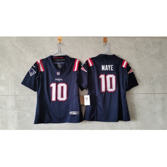 >Women's New England Patriots #10 Drake Maye 2024 F.U.S.E. Navy Vapor Untouchable Limited Stitched Jersey(Run Small)