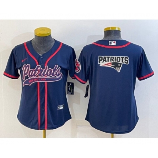 >Women's New England Patriots #10 Mac Jones Navy Blue Team Big Logo With Patch Cool Base Stitched Baseball Jersey